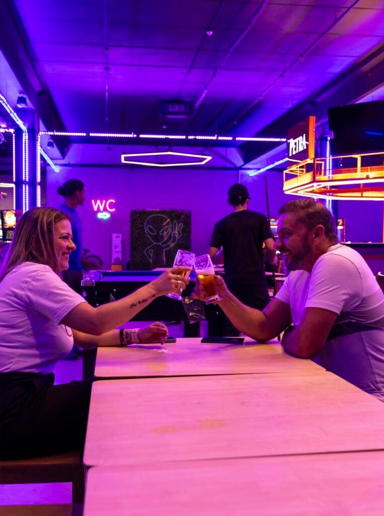 Aqui, a diversão é garantida com boliche, jump, games, área kids e muito mais. Temos pacotes personalizados para todas as idades, que combinam entretenimento, conforto e sabor em um só lugar.